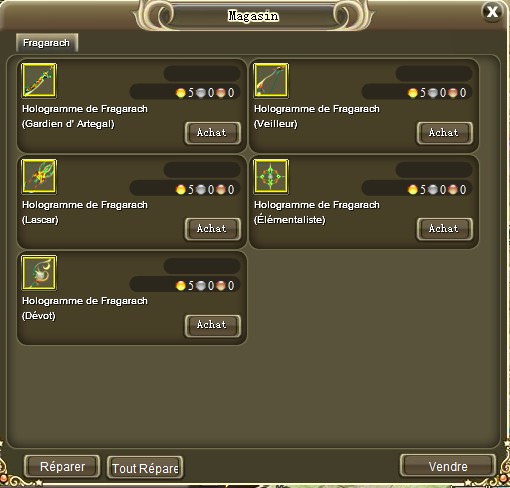 Payé 5Po pour l'hologramme de votre classe. Attention l'achat des autres hologrammes est inutiles car les armes sont liées au personnage ensuite. Donc pas possible de faire de commerce.