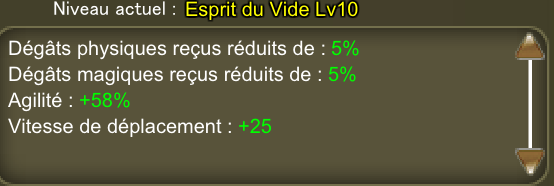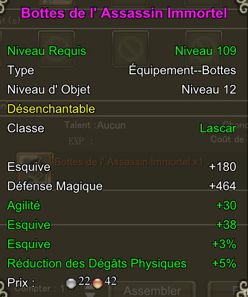 Comme vous pouvez le constater, il vous rapportera de l'agilité (Esquive, Frappe, Critique), des réductions de dégats de la vitesse. Idéal pour enchainer plusieurs adversaires en diminuant le nombre de dégats qui vous est infligé.