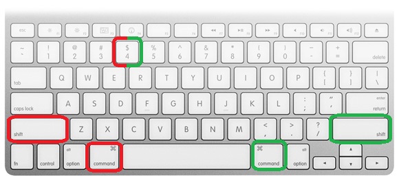 Voici une image d'un clavier Mac histoire que vous ne vous perdiez pas. Vous pouvez choisir la configuration rouge ou verte, le résultat sera le même.