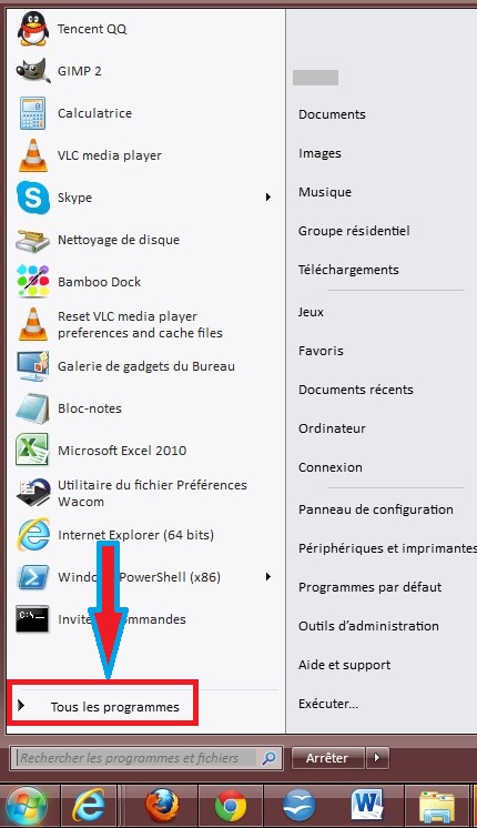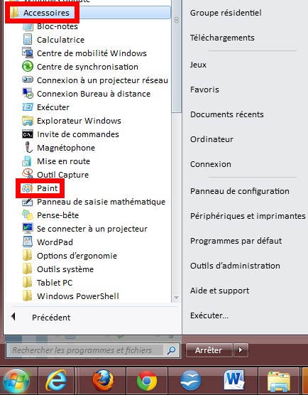 S'il n'y a pas de lien direct vers Paint, cliquez/pointez sur Tous les Programmes.