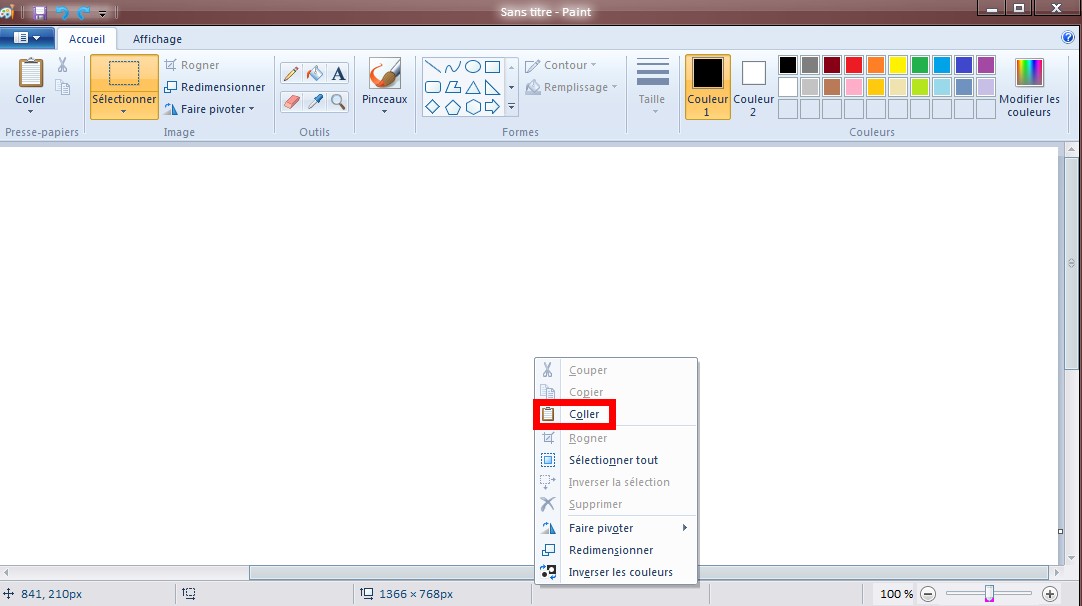 Vous avez donc besoin d'un éditeur d'image pour pouvoir enregistrer celle en mémoire. N'importe quel éditeur d'image fonctionne (Paint, GimP, Photoshop...), il vous suffit alors de faire "Clic Droit" à la souris puis "Coller" de la même manière que si vous souhaitiez copier-coller un texte.