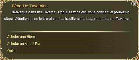 Et comme notre Bébert est un mec bien, tous les soirs de 22h30 à 23h00 il offre une tournée générale à tous les aventuriers déjà présents à l'heure du début des festivités. Cette tournée consiste en une tournée d'EXP, vous n'aurez rien d'autre à faire qu'attendre pour en gagner. Pour les retardataires, mais aussi pour ceux qui en voudraient plus, ils ont la possibilité de racheter des tournées :
