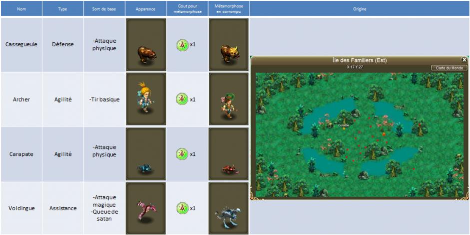 dans différentes îles en Vidalia, et les familiers que l'on doit faire éclore. On peut acheter leurs œufs dans la boutique du jeux dans l'onglet familiers. Une fois capturé ou éclot vous pourrez retrouver et gérer votre familier dans la fenêtre familier disponible grâce au bouton