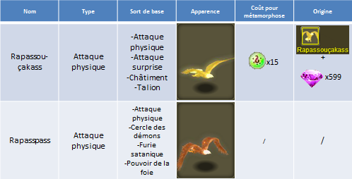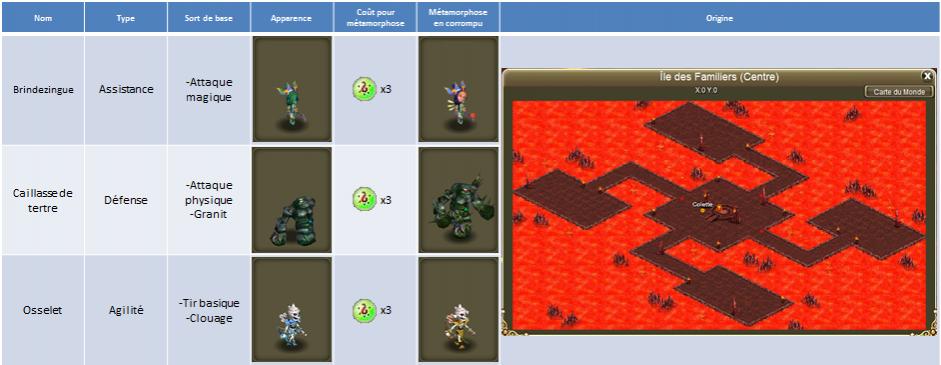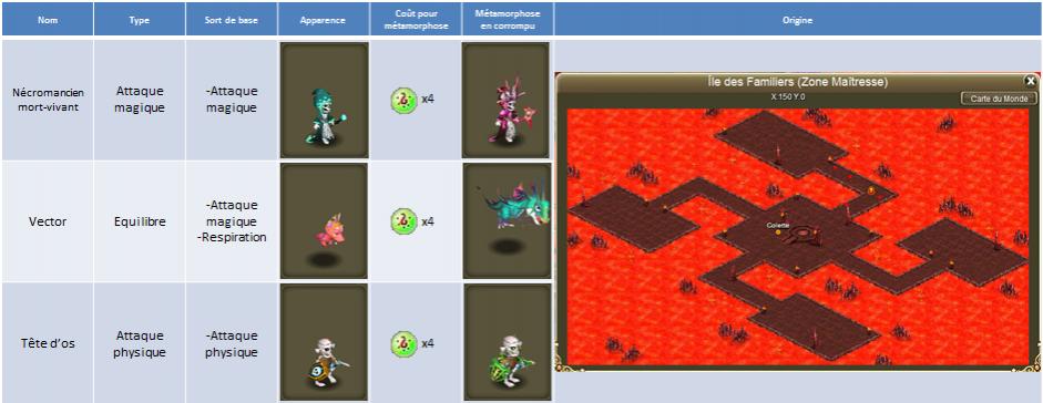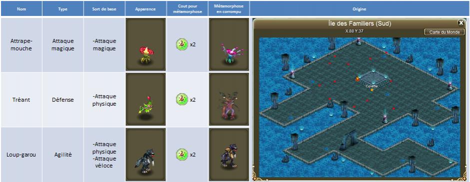ou à la touche Y. On peut faire évoluer certain familier grâce à un nombre différent suivant le familier de cristaux métamorphe