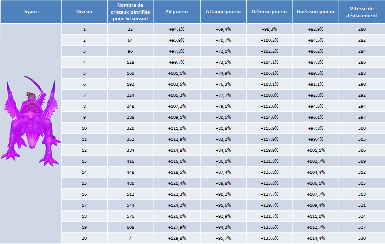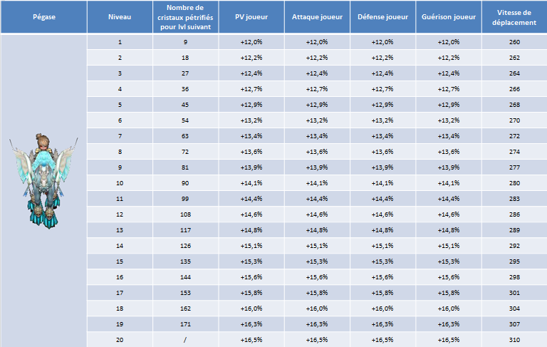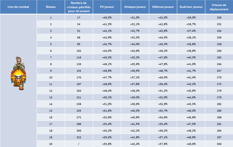 pour voir sa barre de level augmenter. Une fois sa barre pleine il passe au level suivant. Monter le level de vos montures vous permet d'augmenter les bonus offert par celle-ci.