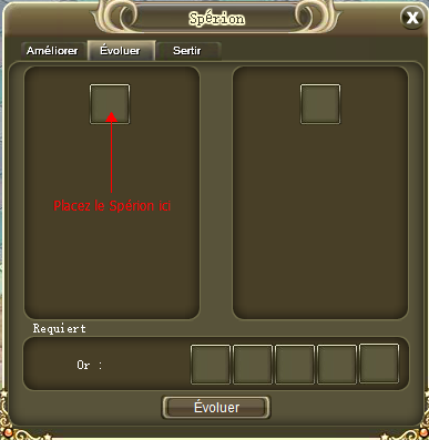 que vous devez placer votre Spérion pour le faire évoluer.