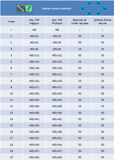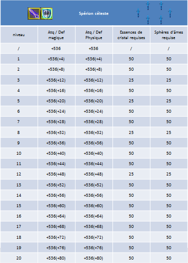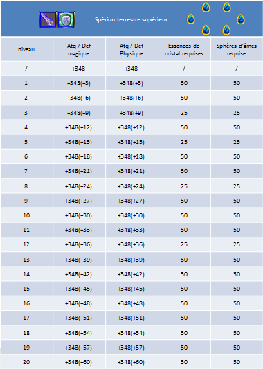 Voici maintenant la description de tous les niveaux et toutes les évolutions du Spérion.