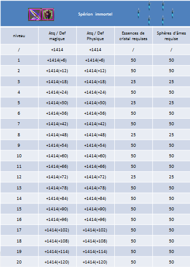 Le Spérion peut augmenter de niveau mais aussi évoluer. Pour le faire augmenter de niveau vous aurez besoin de sphères d'âme