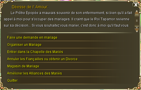 C'est chez elle qu'on peut organiser un mariage, acheter une bague, réserver la Chapelle des Mariés... Mais aussi où on peut Divorcer ou annuler des fiançailles.
