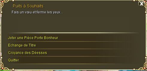 Il permet l'accès aux Souhaits: avec des pièces anciennes données par des monstres d'élite, dépenser 15 pa permet d'obtenir une pièce porte-bonnheur. Il faut collectionner plusieurs pièces porte-bonnheur pour obtenir des récompenses. Il donne aussi des titres pouvant être obtenus grâce à l'échange de pièces porte-bonnheur. Il donne finalement l'accès à la Déesse, donnant des boosts.