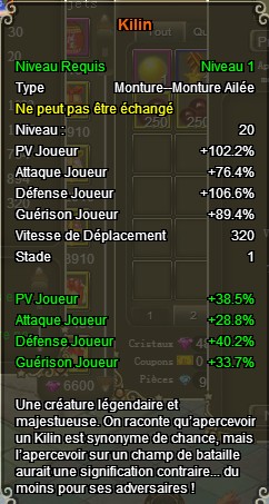 Une fois absorbé vous pouvez constater que les bonus supplémentaire (environ 35% de la monture absorbé) se sont ajouté en dessous de ceux de base.