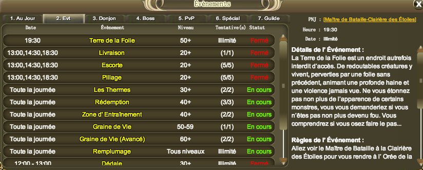 Après, quelques events qui n'ont pas d'horaires fixes (auquels vous pouvez accéder quand vous voulez):