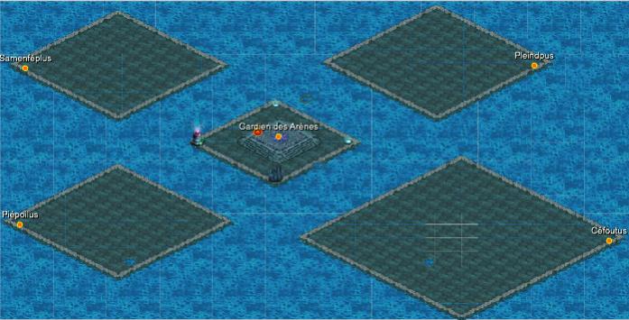 Quand vous entrez dans les arènes vous arrivez au centre. Pour aller dans les différentes arènes il vous fraudra aller voir le Gardien des Arènes
