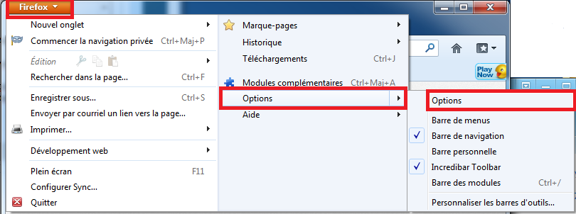 Ouvrez votre navigateur, ouvrez l'onglez "firefox", allez dans "options", puis dans "options" à nouveau.