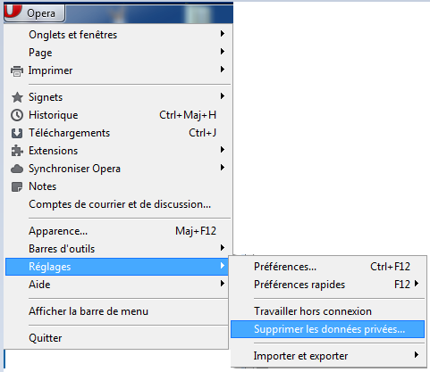 Ouvrez votre navigateur, puis allez dans "historique". Cliquez ensuite sur "effacer les données de navigation".