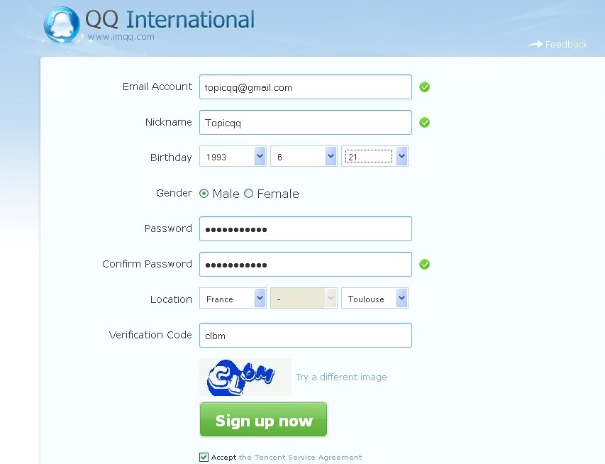 Faites la création du compte QQ :