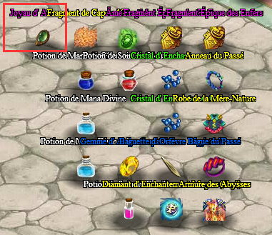 60 000 Cristaux : Cristal de Myrddin x1, Diamant de Myrddin x2, Poudre Enchantée d'Habileté x3, Grande Perle de Sagesse x5