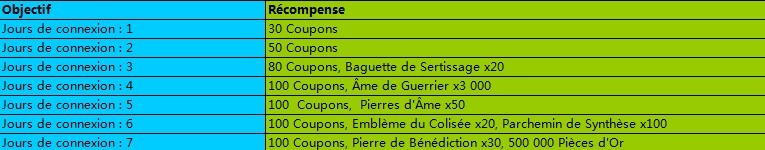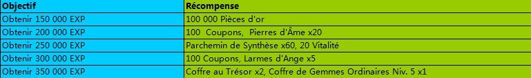 Description : Classez-vous dans la Ascension Céleste pour obtenir des récompenses ! Les récompenses seront distribuées dans les deux jours suivant la fin de l'événement.