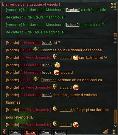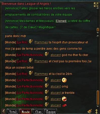 Pour ce genre de problème il faut mp un MJ cela a été dit plusieurs fois mais ce forum ne doit pas contenir ce genre de screens.Envoyé par flammeche89 Voir le messageje sais pas il a quoi ce mec il me cherche tt le temp sur le tchat monde et me traite de tricheur et voila les screen [ATTACH=CONFIG]31148[/ATTACH]