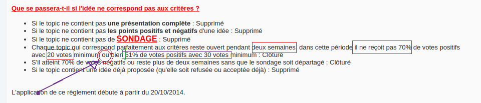 Pourriez vous actualisez cette section et mettre quels sont les thermes exactes pour refusé une idée ou un sondage . Merci