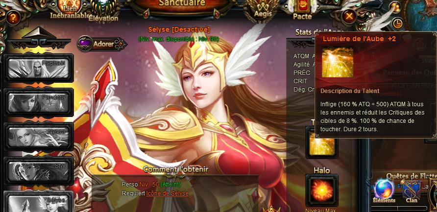 Ceci dit, les stats de Sélyse sont meilleurs. Mais le halo d'Aphrodite permettra, une fois bien monté, de placer du monde sur les 6 emplacements, pas Sélyse qui donne des bonus à 5 emplacements.
