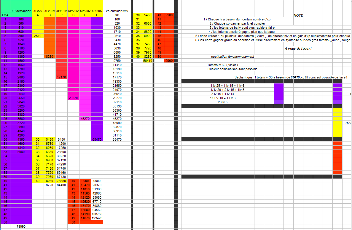 Comme vs pouvez le voir un totem violet lv 30 demande 65470 xp donc il et possible de le faire de plusieurs manière avec plusieurs totem violet de diffèrent niv