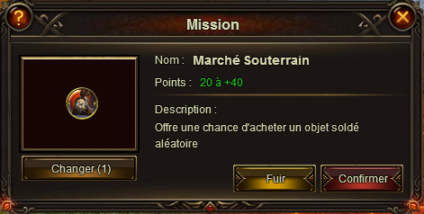 Je n'ai pas mis d'image vis a vis du contenu du marché, car il change à chaque fois. Sachez seulement que l'on ne peut acheter qu'avec des diamants ( je ne vous conseil cependant pas de le fuir, gardez vos tentative pour d'autres missions )
