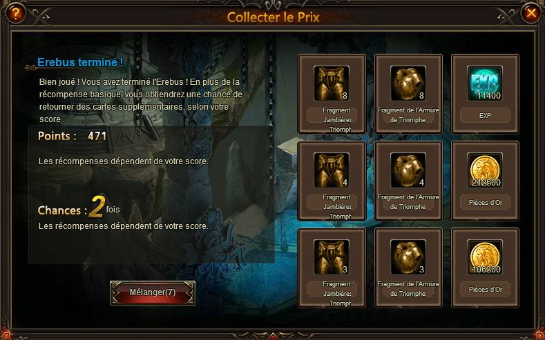 Lorsque vous avez battu notre cher Boss, vous aurez droit a un prix ! Si vous réussissez a réunir un certain nombre de points, vos tentative de tirage seront augmentées ( qu'ils sont généreux, vous ne trouvez pas ? )