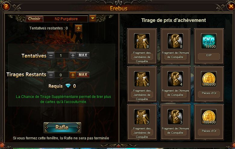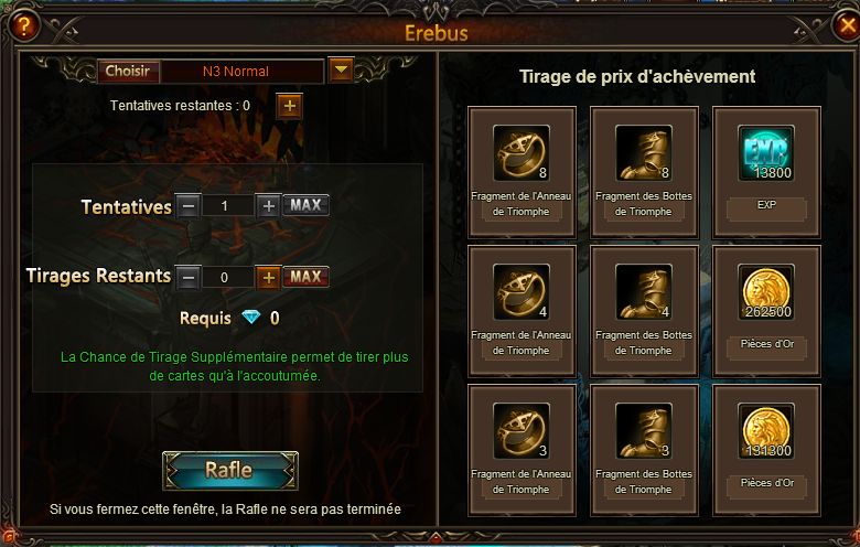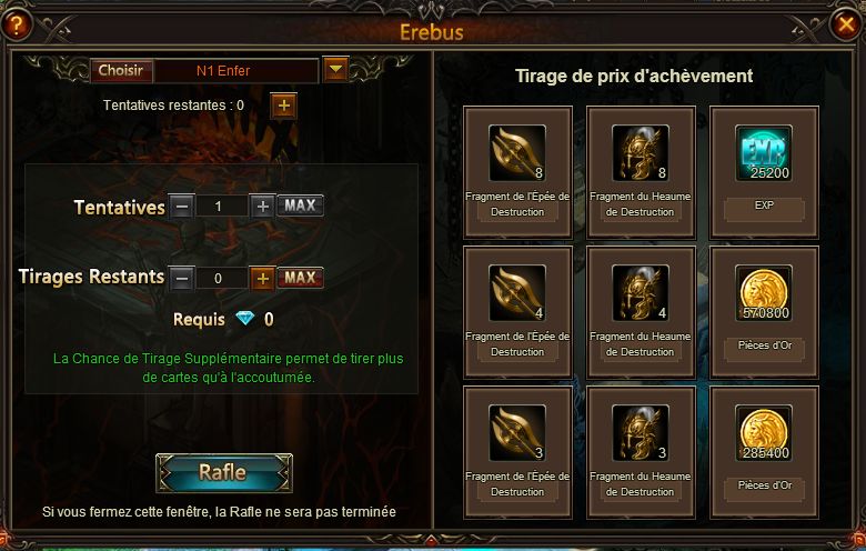 Note : Il est possible d'avoir les tirages même si vous êtes dans l'incapacité de battre le Boss Final.