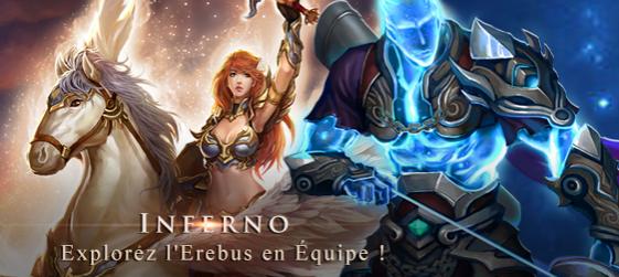 L’Inferno est un tout nouveau système en JcJ qui permet à des groupes de 2 à 3 joueurs de s’attaquer ensemble à un donjon du type de l’Erebus. Il se déverrouille au niveau 45 et permet d’y obtenir de grandes quantités de cristaux d’éléments, de pierres d’âme et d’or. Les récompenses sont basées sur la rapidité, donc éliminez le plus rapidement les monstres et détruisez le boss final au plus vite pour avoir de meilleures récompenses !