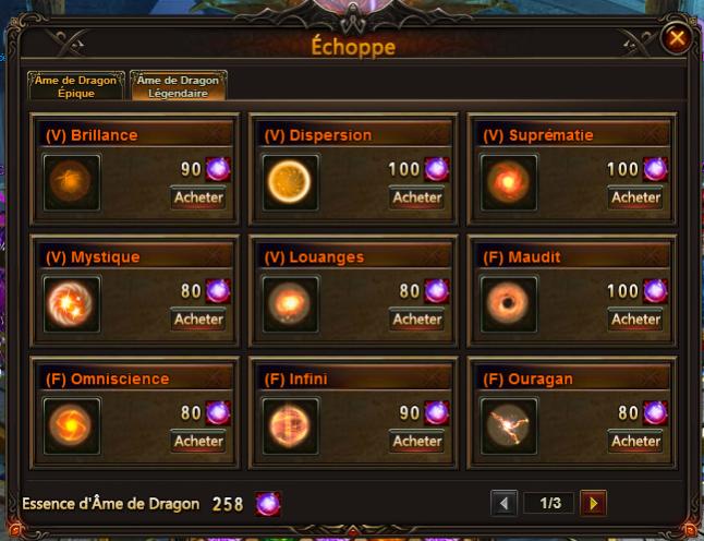 - L'Essence d’Âme de Dragon peut être échangée pour des Âmes de Dragon Épiques et Légendaires dans l'Échoppe d’Âme de Dragon.