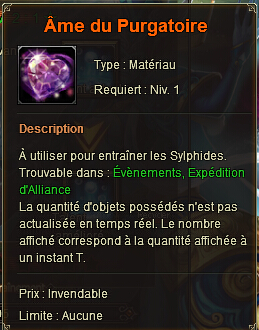 a) Dans l'entraînement, vous pourrez améliorer le niveau de votre Sylphide en utilisant des Âmes du Purgatoire pouvant être obtenues via les événements et l'Expédition d'Alliance. Chaque niveau de Talent requiert 10 étoiles pour monter d'un niveau. Les autres apparences/Sylphides peuvent être obtenus via les événements.
