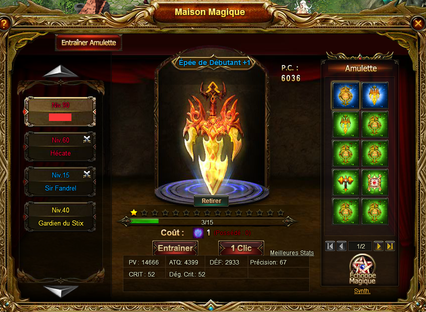 La Maison Magique est constituée de 3 parties : Entraîner Amulette, Graver Inscription et Inscription.