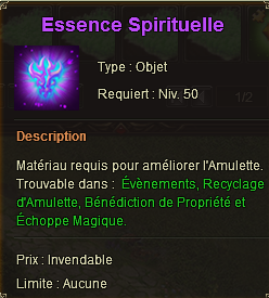 (Remarque : la fonction Recycler de l'Amulette sera disponible dans une prochaine mise à jour.)