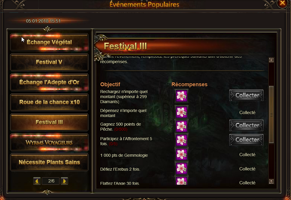 bonjour , festival 3 événement récolte 500points de pêche reste griser ange s42