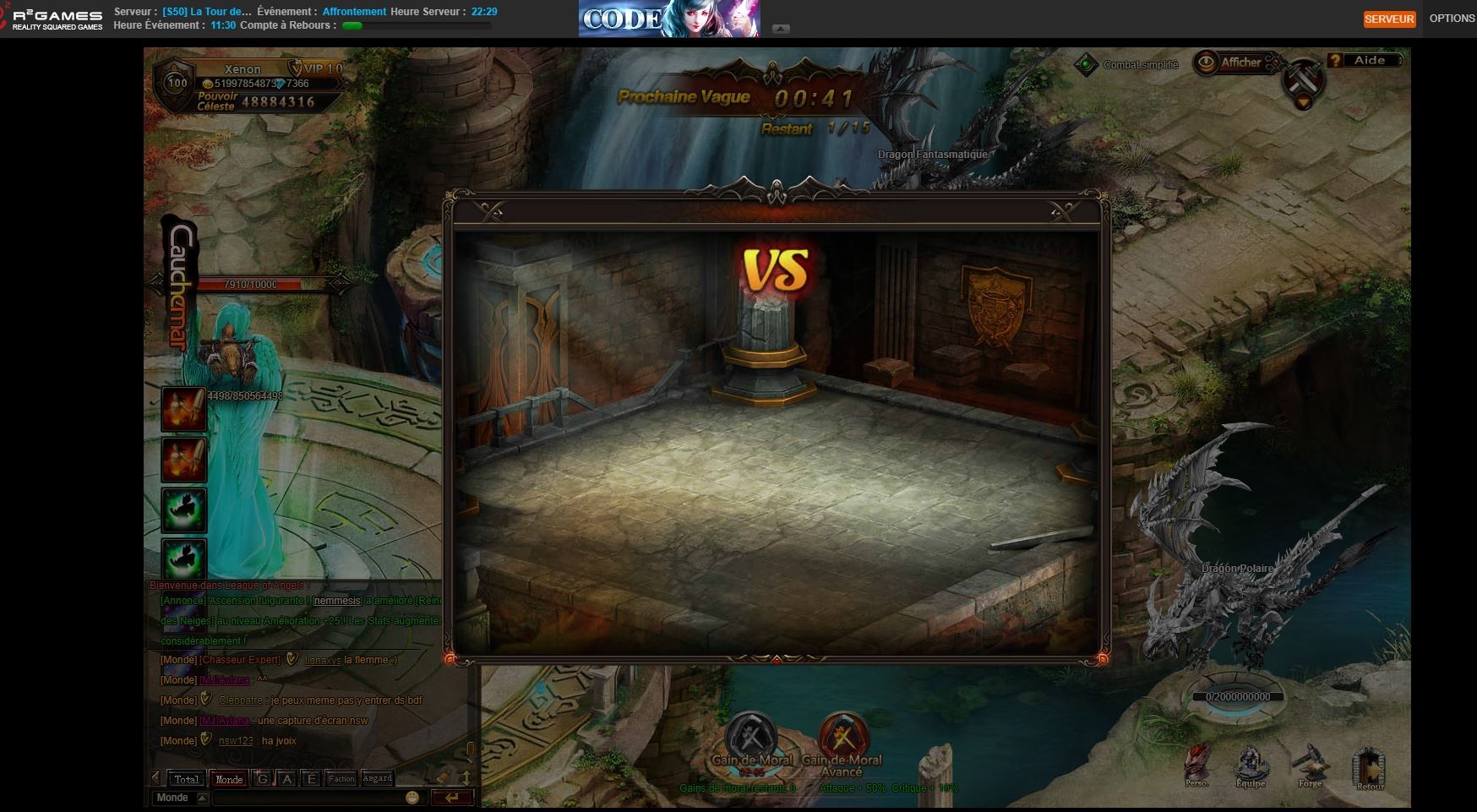 gros ralentissement sur chargement du combat (du coup en haut impossible de faire la vague complète)