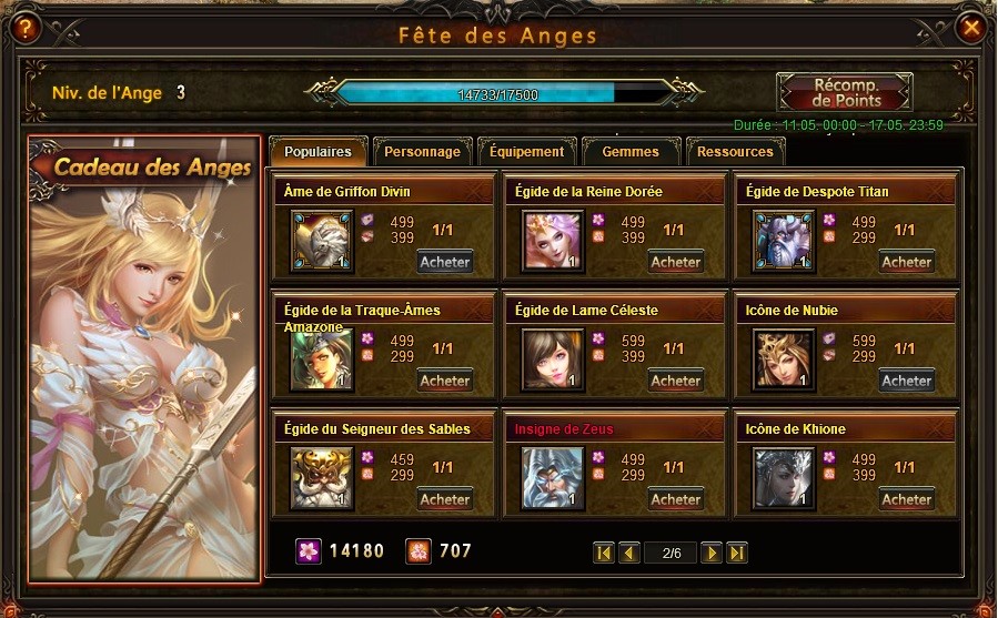 Les boutons pour acheter Nubie ou l'évo de Griffon sont grisés et donc l'achat est impossible. Possible de débloquer cela svp ?