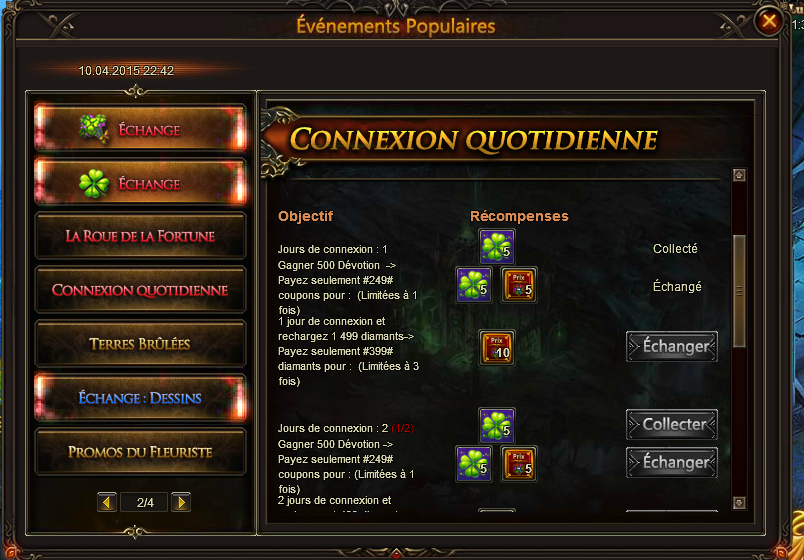 quete evenement populaire manquante pour coupon tirage lotto sur 4 jour ca ce fait en meme tmps que la roue event liee svp merci de ajouter, encore et encore .s46 ua27 konepamoin
