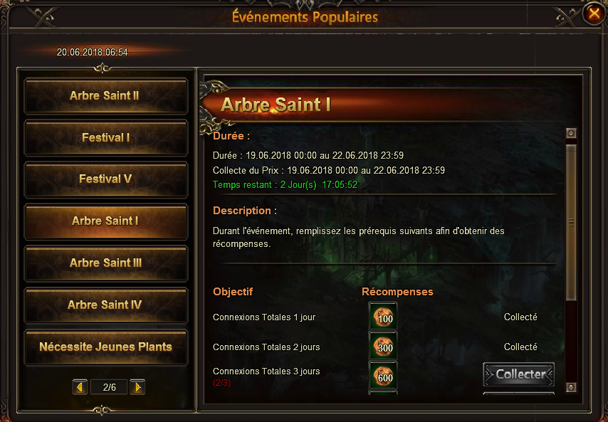 Il manque toujours Echange de bouquets, La Roue de la Fortune, La connexion quotidienne, Le boss monde et celui des Wyrms Voyageurs aussi... et peut être d'autres que je n'ai plus en tête...