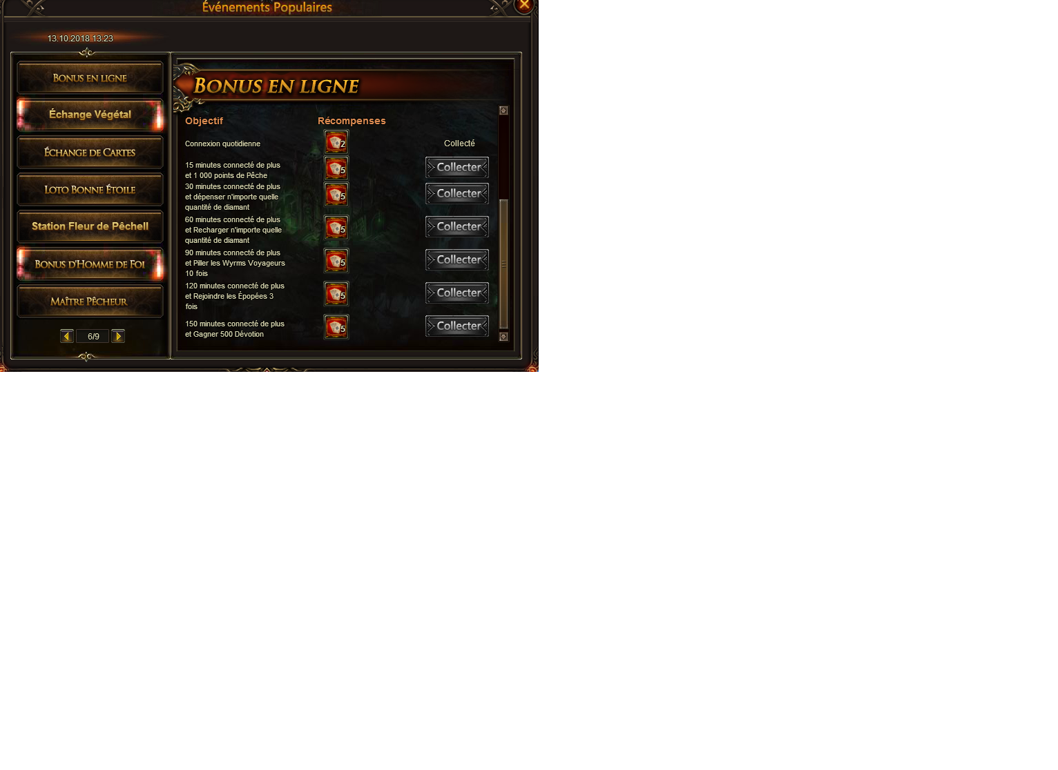 J'ai également ce souci 'évent pop" "bonus en ligne" depuis le 12/10/2018 aucun collectes possible sauf le jour de connexion et ce malgré les prérequis ok.