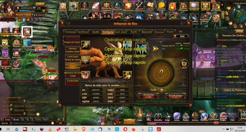 Impossible de monter le niveau d'enchantement en raison "d'opération trop rapide". Et ce, même après actualisation, redémarrage du client, plusieurs minutes d'attente....