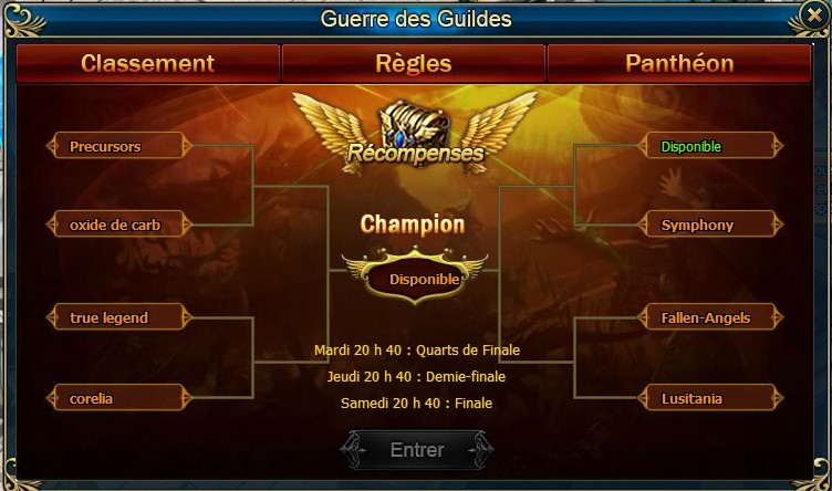 Voici un exemple avec la GvG, qui est un très bonne exemple pour ma part car elle permet de gagner de très grosse récompense non négligeable, hors la beaucoup de guilde ne peuvent profiter de ces récompenses vue qu'elle n'affronte pas d'adversaire au premier tour.