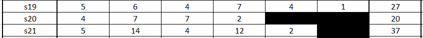 Si les fusions avaient été faites comme ceci s17/19 et s18/20, voilà ce que les tableaux auraient donnés :