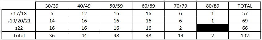 Et la tranche 80/89 je n’en parle même pas puisque une seule personne à la base et elle restera seule.